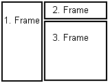 <frameset cols="40%,60%"> ... Zwei Frames, wobei der Inhalt des ersten Frames hier bestimmt wird... <frameset rows="20%,80%"> ... Noch mal zwei Frames, deren Inhalt hier bestimmt wird... </frameset> </frameset> |